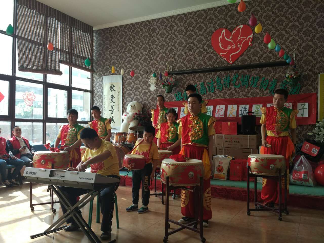 早上9:00華寶公司和方舟制藥公司的同事們來(lái)到“晶潔鳥(niǎo)陽(yáng)光家園”——這是一所非企業(yè)殘障人士服務(wù)機(jī)構(gòu),主要服務(wù)對(duì)象為10至40歲的智障人士,現(xiàn)有教職員工12余人,40余個(gè)志愿者團(tuán)隊(duì),100余個(gè)網(wǎng)絡(luò)支持群。是以訓(xùn)練、托養(yǎng)為主,針對(duì)每個(gè)不同特點(diǎn)的心智障礙人士,設(shè)置不同的方案,使這些特殊的孩子逐步能夠有能力融入社會(huì),自主生存,10:00活動(dòng)正式開(kāi)始,孩子們?cè)诩议L(zhǎng)和老師們的帶領(lǐng)下來(lái)到活動(dòng)地點(diǎn),為大家唱歌、跳舞、雖然孩子們開(kāi)始的時(shí)候?qū)δ吧擞行┑钟|,但在交流一段時(shí)間之后,也慢慢融入到了我們當(dāng)中,氣氛非常愉快,笑聲不斷。在一片歡笑聲中,這次活動(dòng)圓滿結(jié)束,同時(shí)我們借助西安電視臺(tái)新聞一臺(tái)、陜西衛(wèi)視、三秦都是報(bào)、陜西日電報(bào)、今日頭條、騰訊視頻、優(yōu)酷視頻等多家媒體向外界宣傳“不排斥、不歧視、關(guān)愛(ài)自閉癥兒童,使更多的愛(ài)心人士加入到關(guān)愛(ài)自閉癥兒童活動(dòng)中。
