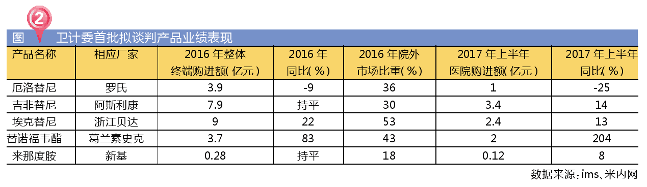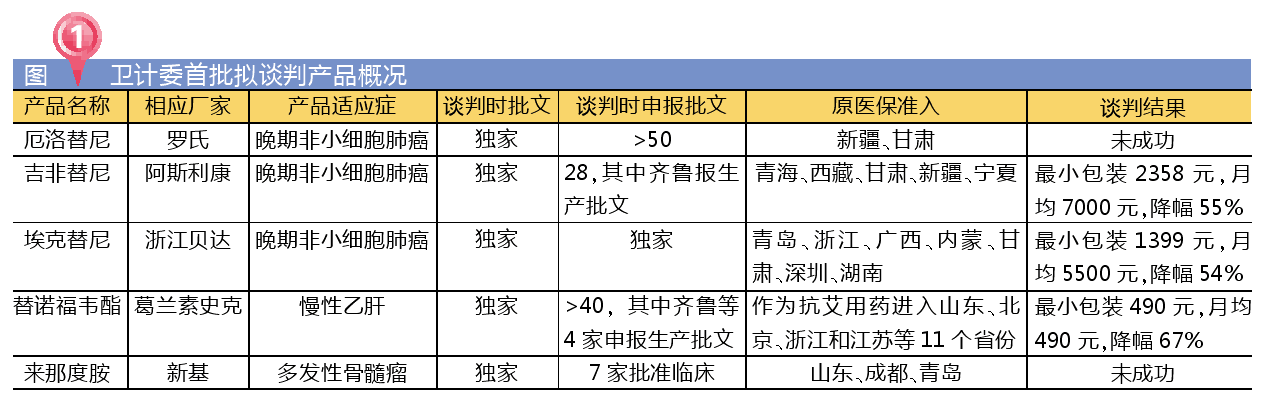 衛(wèi)計委首批擬談判5個產(chǎn)品基本情況見表1。