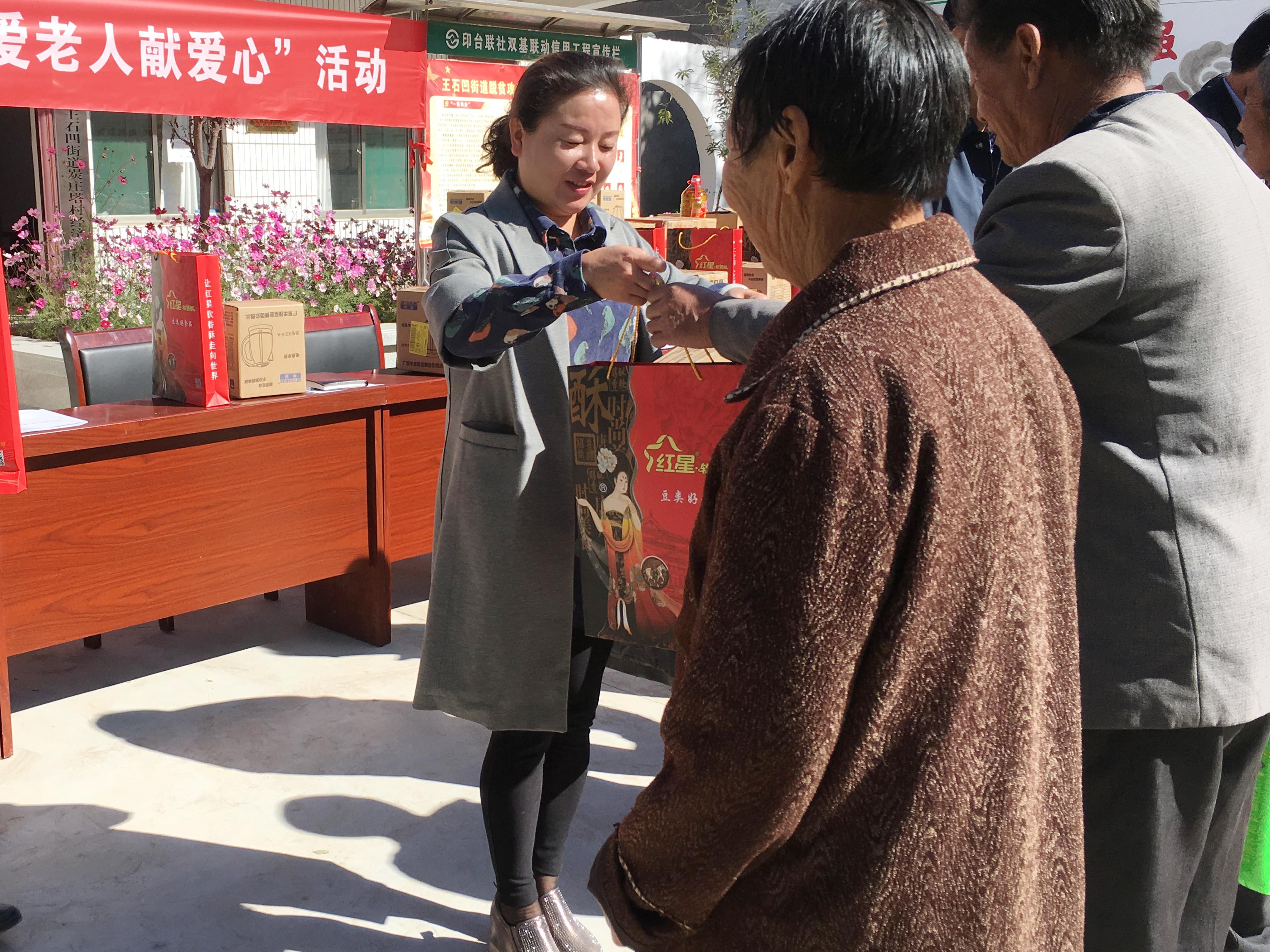 2018年10月9日,秋風(fēng)送爽,瓜果飄香,在“九九”重陽節(jié)即將到來之際,為發(fā)揚(yáng)尊老、愛老、敬老的優(yōu)良傳統(tǒng),銅川市食品藥品監(jiān)督管理局和陜西方舟制藥有限公司在銅川印臺區(qū)王石凹街道炭莊塔村聯(lián)合舉辦了“重陽節(jié)關(guān)愛老人獻(xiàn)愛心活動”,為65歲以上的老人及貧困戶發(fā)放了米、油、熱水壺、糕點(diǎn)等慰問品。