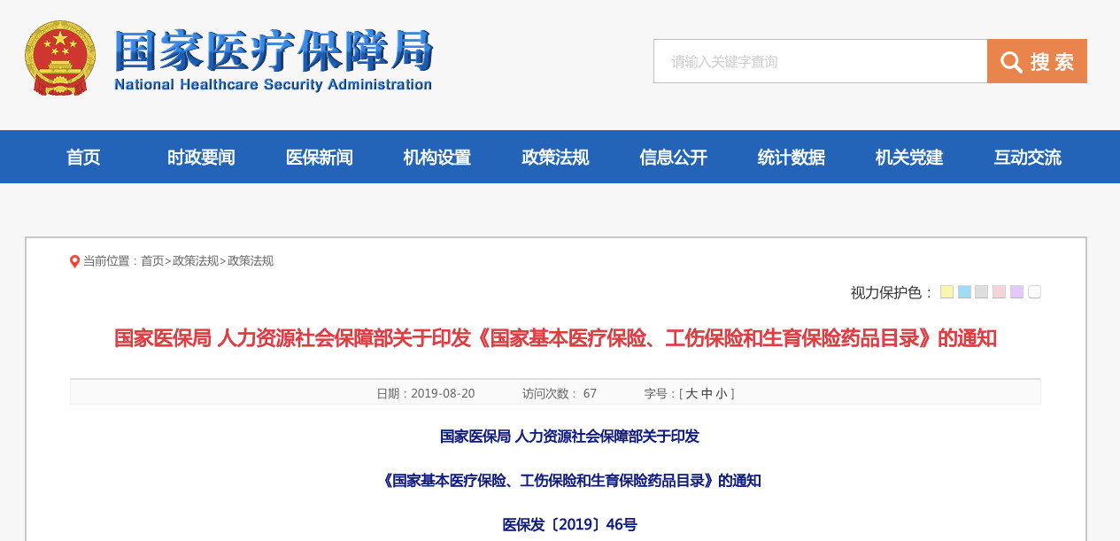 剛剛,國家醫(yī)保局官網(wǎng)發(fā)布《國家基本醫(yī)療保險(xiǎn)、工傷保險(xiǎn)和生育保險(xiǎn)藥品目錄》,公布了2019年版國家基本醫(yī)療保險(xiǎn)、工傷保險(xiǎn)和生育保險(xiǎn)藥品目錄。
