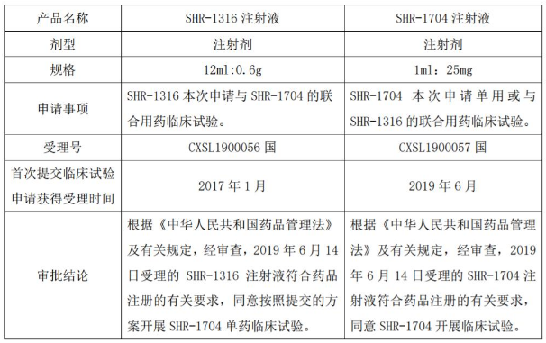 9月10日,恒瑞醫(yī)藥發(fā)布公告稱,公司及子公司蘇州盛迪亞生物醫(yī)藥有限公司、上海恒瑞醫(yī)藥有限公司的SHR-1316注射液、SHR-1704注射液近日收到國(guó)家藥監(jiān)局核準(zhǔn)簽發(fā)的《臨床試驗(yàn)通知書》,并將于近期開展臨床試驗(yàn)。