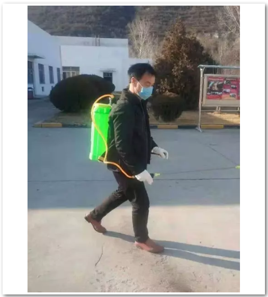 保衛(wèi)科的丁英俊,每日多次對(duì)生產(chǎn)基地公共區(qū)域進(jìn)行消毒