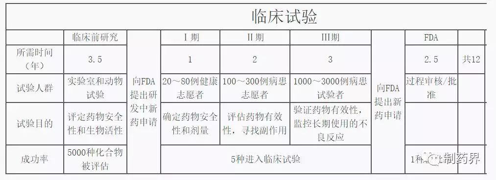 藥物從最初的實(shí)驗(yàn)室研究到最終擺放到藥柜銷售平均需要花費(fèi)12年的時(shí)間。進(jìn)行臨床前試驗(yàn)的5000種化合物中只有5種能進(jìn)入到后續(xù)的臨床試驗(yàn),而僅其中的1種化合物可以得到最終的上市批準(zhǔn)。